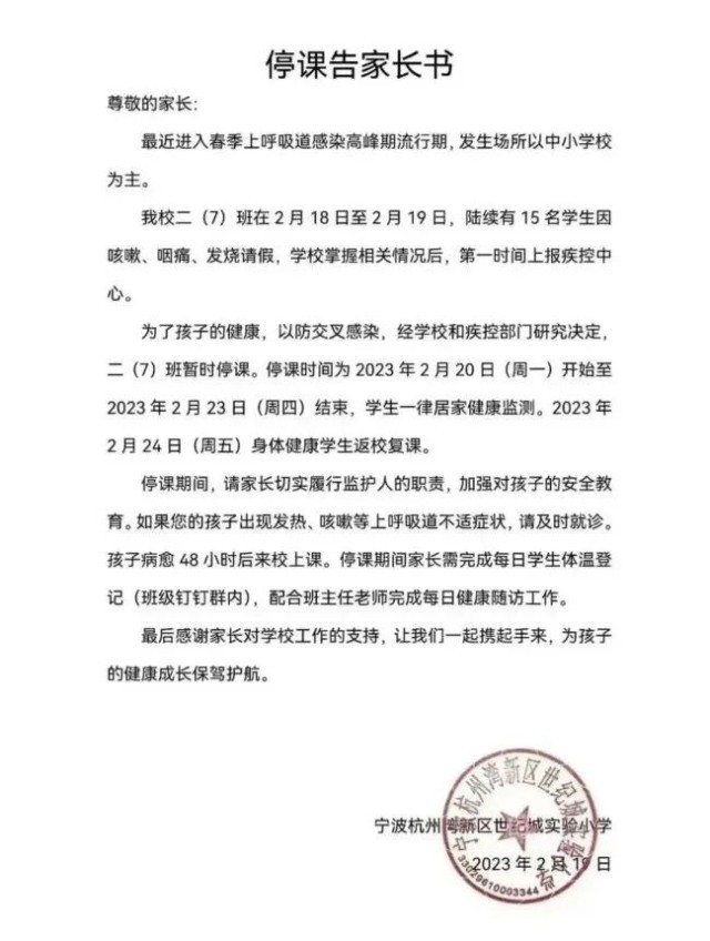 這兩天,寧波杭州灣新區(qū)世紀城實驗小學發(fā)布停課通知,引起了許多網(wǎng)友的關(guān)注。