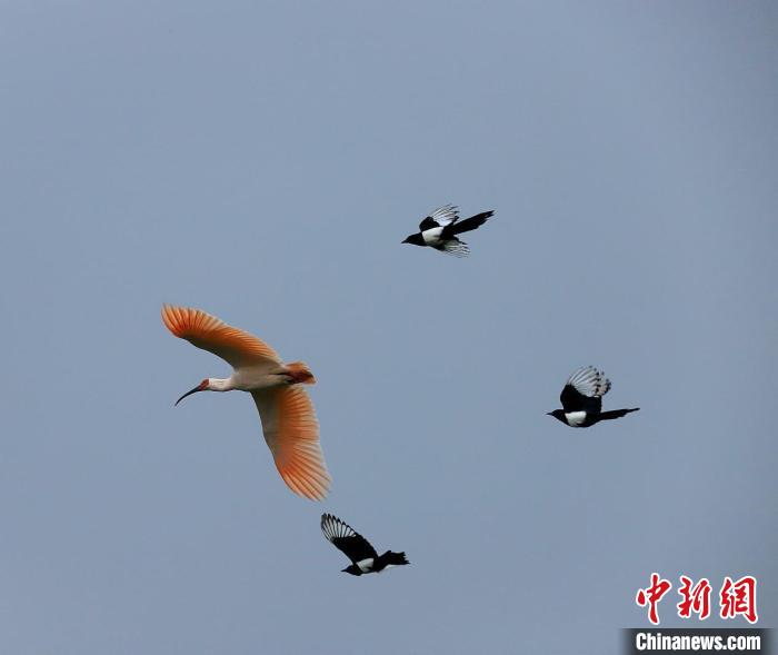 朱鹮和喜鵲打架其實是一種爭奪領域的行為,在自然界是很普遍也很正常的。朱鹮在野生環(huán)境中,不光要對付老鷹、蛇類等天敵,還要學會與競爭對手烏鴉、喜鵲等“打交道”,趨利避害,不斷增強自然生存本領。