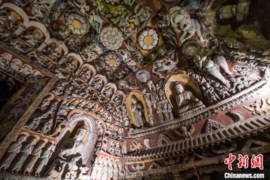 云岡石窟第12窟又名“音樂窟”,前殿上壁雕塑的數(shù)十身伎樂天人形象正在演奏琵琶、篳篥、古琴等各種中西式樂器,是中國古代最早的宮廷交響樂團。武俊杰 攝