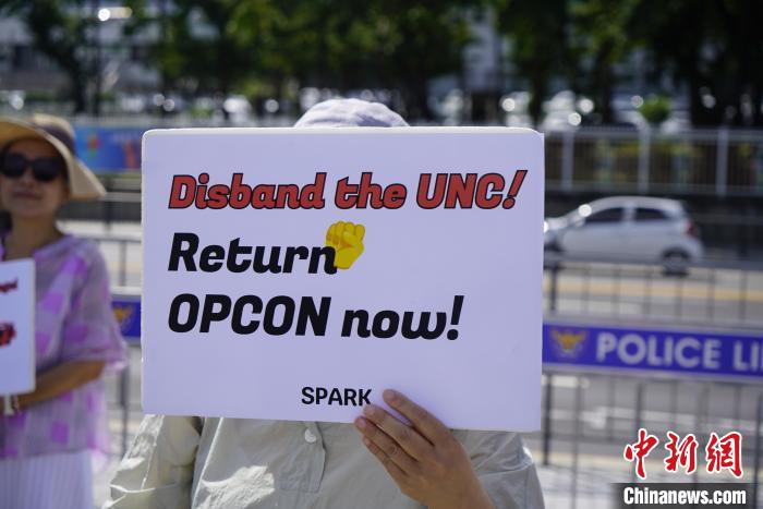 21日上午,韓國民間團(tuán)體“和平統(tǒng)一開創(chuàng)者”在韓國總統(tǒng)府前的空地集會。有市民手舉“中斷韓美軍事演習(xí)”“立即收回戰(zhàn)時作戰(zhàn)指揮權(quán)”“反對北約成員國軍事介入朝鮮半島”等標(biāo)語,呼吁韓美兩國停止軍演,要求廢除美國對韓國提供的“延伸威懾”。