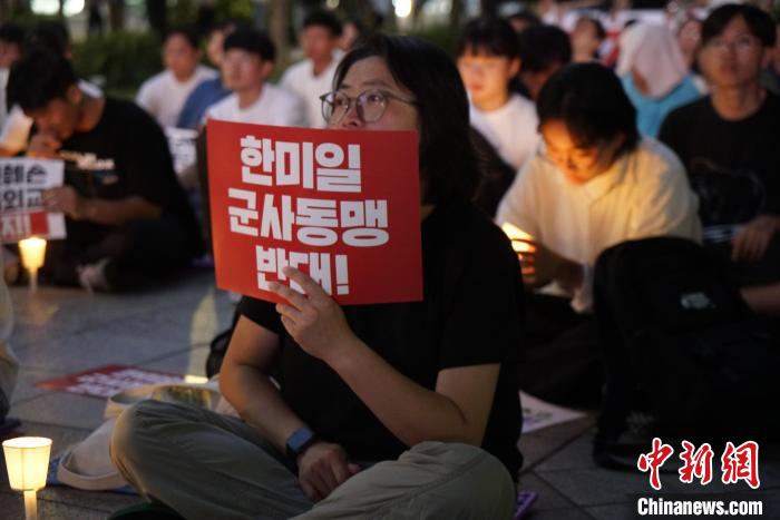 18日晚間,韓國民間團(tuán)體“停戰(zhàn)70年朝鮮半島和平行動”在首爾光化門廣場附近舉行燭光集會,抗議韓美聯(lián)合軍演,反對韓美日加強軍事合作。