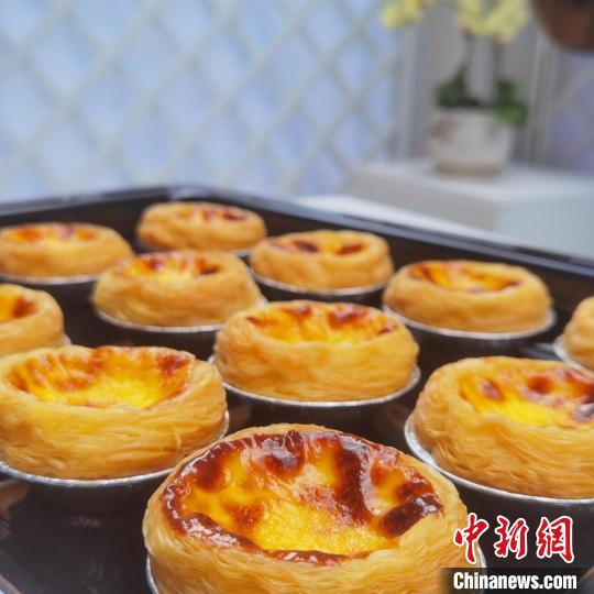 “圓夢(mèng)號(hào)”餐車上珠海市社會(huì)福利中心成年殘障孤兒制作的蛋撻。廣東省民政廳供圖