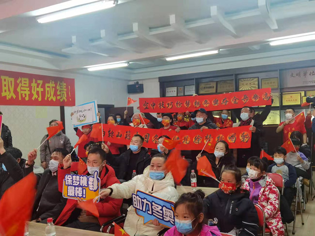 徐夢桃參加的每一場北京冬奧會比賽,她的啟蒙教練、家鄉(xiāng)人民和小運動員們都在鞍山市軍事體育學(xué)院為她加油助威。胡婧怡攝