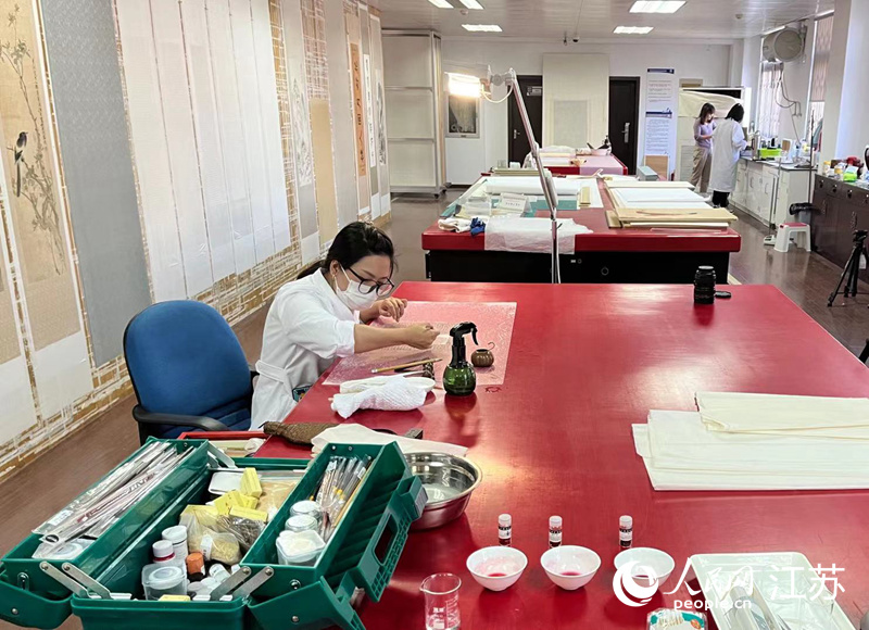 現(xiàn)在,越來越多的年輕人加入到這份彰顯情懷和定力的工作中來。陳思燚說,“我們就是‘書畫醫(yī)生’,修復(fù)書畫的過程,就是給文物看病治療的過程?!蹦壳?,在南博從事書畫修復(fù)工作的團(tuán)隊已有9人,主要以80后、90后為主力。