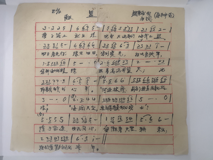 “種子落土就生根,地角天邊,我們就海誓山盟”“海闊天空,要記得我是正義的戰(zhàn)士”“攜手前進(jìn),生死同心,愛情在春天里耕耘”……一張泛黃的稿紙上寫滿了革命激情。這是二十世紀(jì)三四十年代,由趙良璋和薛介民兩位烈士共同創(chuàng)作的革命歌曲《盟》。去年3月1日,薛介民的后人將這份珍貴的手稿捐贈(zèng)給了雨花臺(tái)烈士紀(jì)念館。