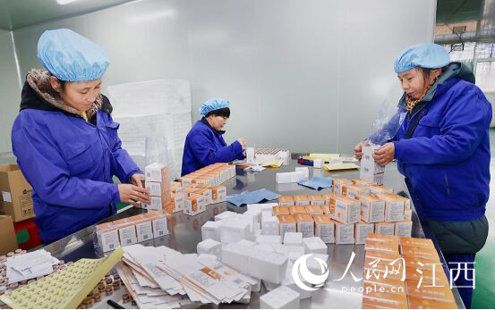 春節(jié)期間,贛江新區(qū)極尊堂中藥制藥有限公司內,工人們正在進行產品裝箱。贛江新區(qū)供圖