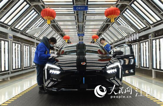 正月初一,年味正濃。而位于南昌經開區(qū)的江鈴集團新能源汽車公司工廠的生產車間內,工人在車輛前專注地忙碌著。