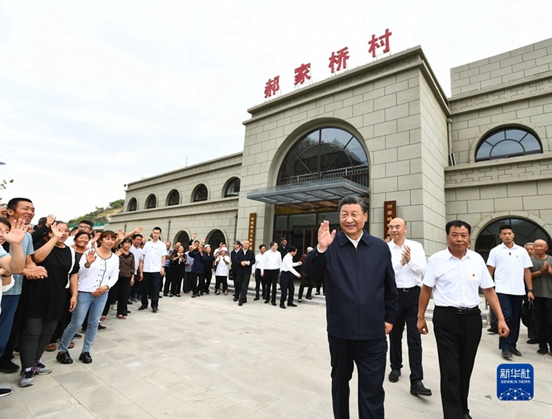 2021年9月13日至14日,中共中央總書記、國家主席、中央軍委主席習(xí)近平在陜西省榆林市考察。這是14日下午,習(xí)近平在綏德縣張家砭鎮(zhèn)郝家橋村考察時(shí),向鄉(xiāng)親們揮手致意。新華社記者 謝環(huán)馳攝