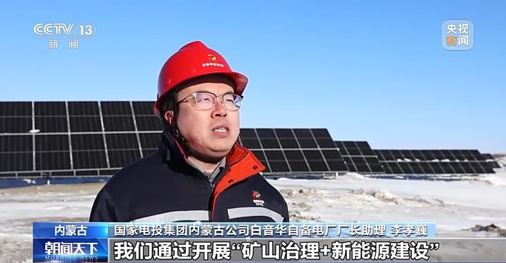 國家電投集團(tuán)內(nèi)蒙古公司白音華自備電廠負(fù)責(zé)人 沈洪發(fā):在排土場(chǎng)上安裝光伏板,不僅可使地表蒸發(fā)水量降低20%至30%,而且還能有效降低風(fēng)速,很好地改善了植物的生存環(huán)境,地表生態(tài)恢復(fù)效果顯著。
