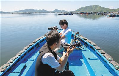 參加南灣猴島生態(tài)科學(xué)影像研學(xué)營的學(xué)生,在新村港拍攝疍家水上生活素材。本報(bào)記者 武威 攝