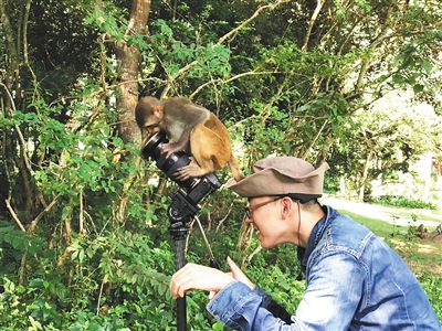 參加南灣猴島生態(tài)科學(xué)影像研學(xué)營的學(xué)生在猴島拍攝。(受訪者供圖)