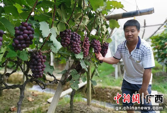 興安縣溶江鎮(zhèn)是華南最大的葡萄產(chǎn)區(qū),有發(fā)展葡萄種植的基礎(chǔ),大家一合計,便鼓勵廖四清種植葡萄。他想辦法從親戚那里承包了2畝地,連同自己的就有了4畝葡萄園。自打有了葡萄園,廖四清夫婦一年四季都不閑著,鋤地,搭架、施肥、剪枝、蓋膜、套袋、每一個環(huán)節(jié),都在農(nóng)業(yè)局技術(shù)人員的指導(dǎo)下,精耕細作。縣農(nóng)業(yè)推廣站,扶貧幫扶人,鄉(xiāng)鎮(zhèn)技術(shù)人員對他也是“格外關(guān)照”,連什么時候澆水都有詳細計劃。