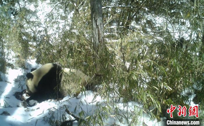3月22日,大熊貓國(guó)家公園四川雅安市寶興縣蜂桶寨片區(qū)通報(bào)稱(chēng),近日,工作人員在收集野外紅外線(xiàn)相機(jī)時(shí),發(fā)現(xiàn)拍攝到了野生大熊貓?jiān)谘┑刂泻人恼滟F影像。