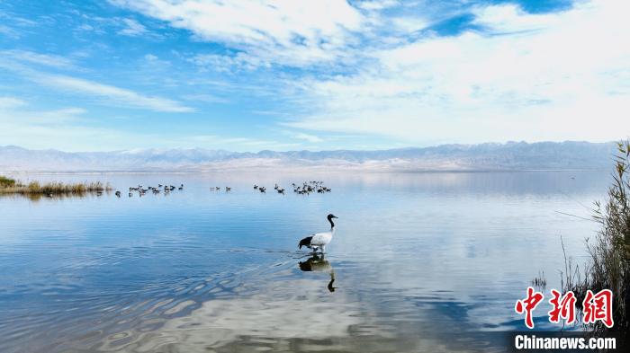 黑頸鶴群現(xiàn)身柴達(dá)木盆地都蘭湖國家濕地公園