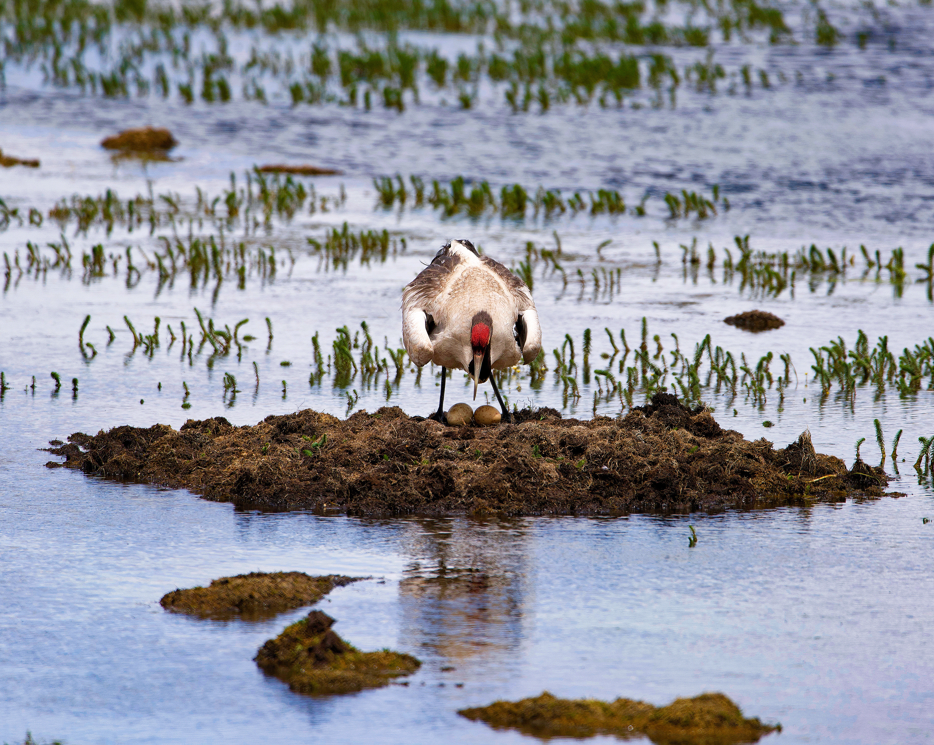 棲息在濕地上孵蛋的母鶴,國(guó)家一級(jí)保護(hù)動(dòng)物。