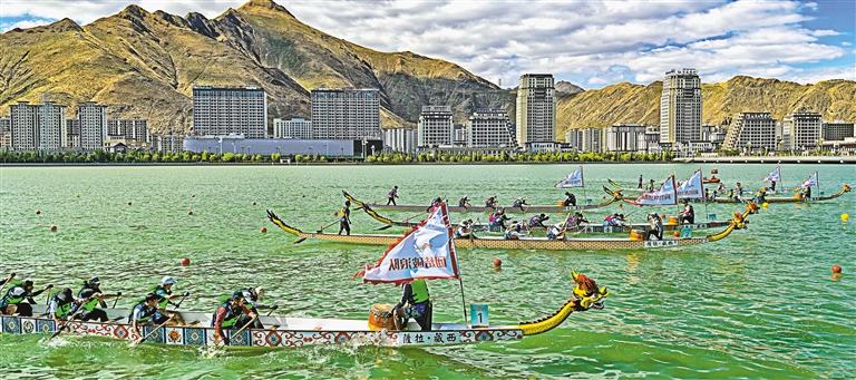 鑼鼓喧天歌盛世,龍舟競渡展雄風。6月9日,隨著裁判一聲令下,2024年西藏自治區(qū)端午節(jié)牛皮船(龍舟)賽在拉薩市金珠東路濱河公園水域開劃。這是在西藏舉辦的首個城市龍舟賽,也是中國海拔最高的龍舟賽。