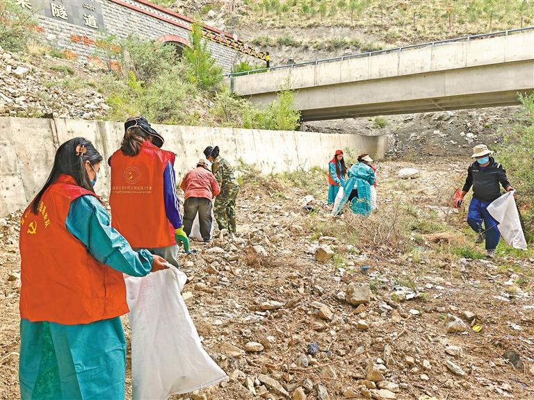 行動中,大家手持垃圾袋、清掃工具,各盡其責,對隧道下的公共林區(qū)、后山周邊、背街小巷等處的白色垃圾、建筑垃圾、生活垃圾進行集中清理。隨后,拉薩市政府國資委機關黨支部在社區(qū)開展了“環(huán)保綠色 擁抱未來”倡導綠色理念的宣傳活動,并向社區(qū)全體網(wǎng)格工作人員發(fā)放了日常工作所需的環(huán)保用品。