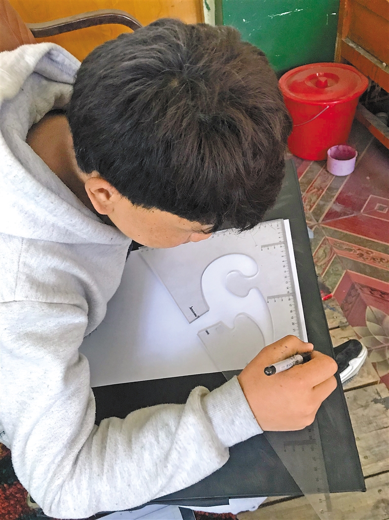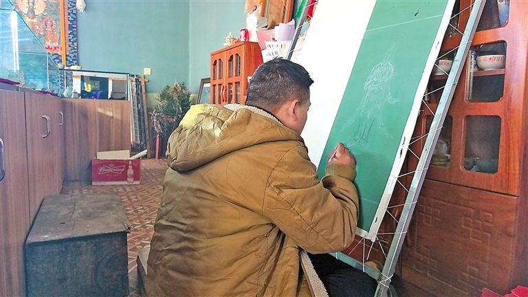 “那段時間是最難熬的,每天睜開眼除了吃飯,其他時間都在畫畫?!甭遄犯嬖V記者,當他真正開始學習時,才深刻體會到要想成為唐卡手藝人,需要付出更多努力。“也曾想過放棄,但還是咬咬牙堅持了下來?!闭f到這里,洛追有些靦腆地笑了笑。
