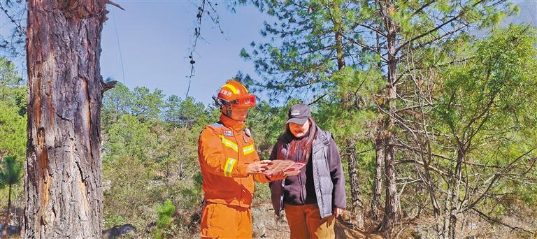 林芝市察隅縣消防救援大隊宣傳員走進(jìn)旅游景區(qū),為游客科普林區(qū)防火常識。 通訊員 肖暄 攝