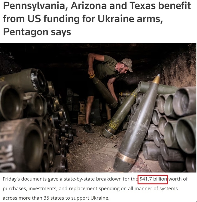 而美國國防部9月6日最新發(fā)布的一份文件顯示,在此過程中,35個美國聯(lián)邦州共獲得了417億美元的合同。此外,美國的軍工巨頭雷神公司、通用動力等公司和美國國防部簽署了數(shù)十億美元的生產(chǎn)武器的合同。