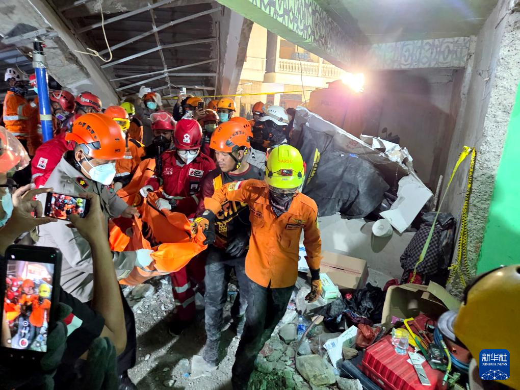 10月1日,救援人員在印度尼西亞?wèn)|爪哇省詩(shī)都阿佐縣建筑倒塌現(xiàn)場(chǎng)救出一名幸存者。新華社發(fā)(印尼國(guó)家搜救局供圖)
