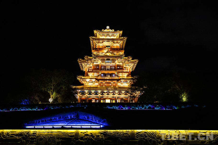 圖為位于麗水甌江之畔的應(yīng)星樓夜景 攝影:龍真多吉