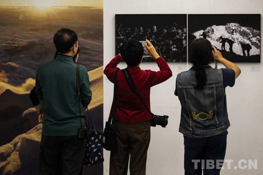圖為觀眾正用手機(jī)拍下展覽的攝影作品 攝影:龍真多吉