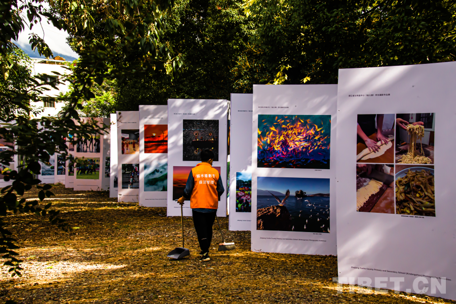圖為攝影節(jié)上室外展出的部分作品 攝影:龍真多吉