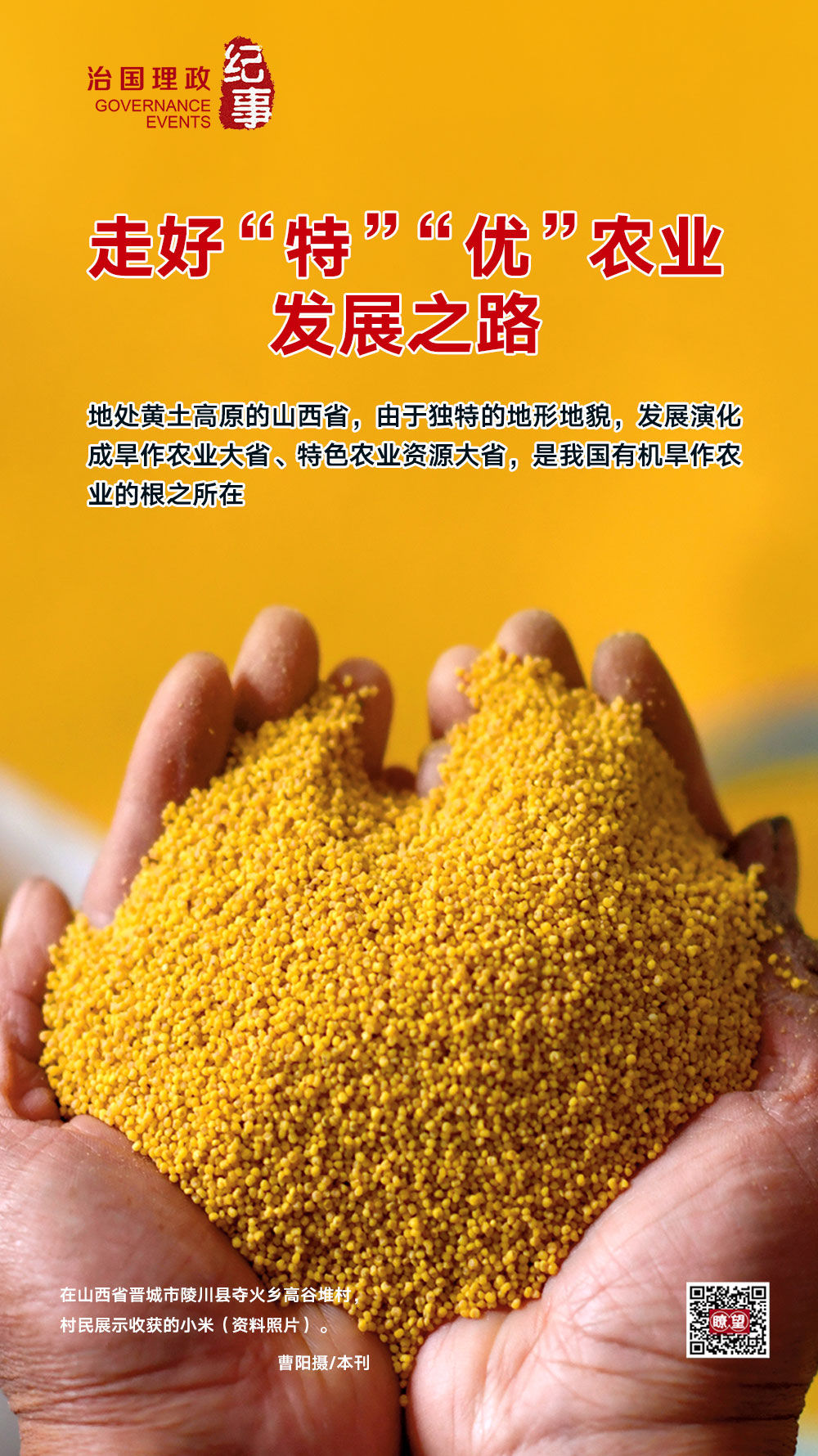 “人說山西好風(fēng)光,地肥水美五谷香?!钡靥廃S土高原的山西省,由于獨特的地形地貌,發(fā)展演化成旱作農(nóng)業(yè)大省、特色農(nóng)業(yè)資源大省,是我國有機(jī)旱作農(nóng)業(yè)的根之所在。