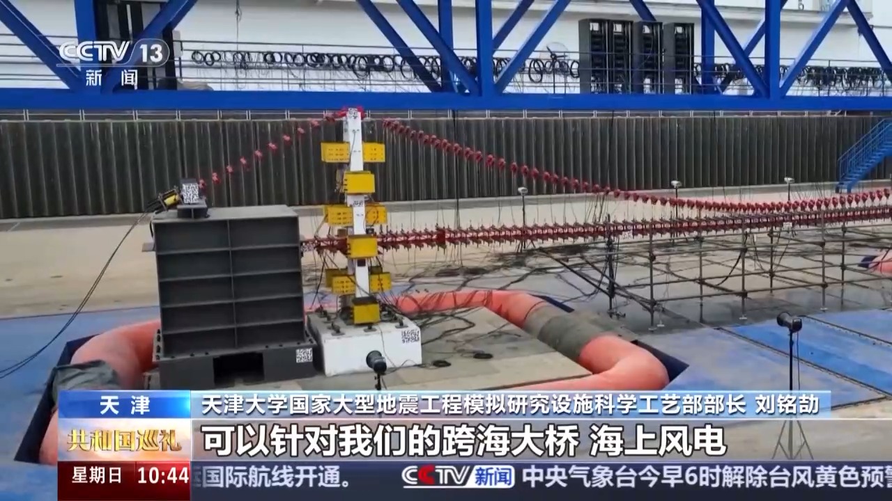 天津大學國家大型地震工程模擬研究設(shè)施科學工藝部部長 劉銘劼:我們這里面是世界上唯一的一套,可以實現(xiàn)水下雙臺地震、波浪、水流聯(lián)合模擬的一個試驗裝置,可以在3米水深下工作,可以針對我們的跨海大橋、海上風電這些海上“超級工程”進行更加真實的地震模擬研究。