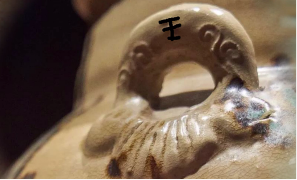 青釉褐綠點彩云紋雙耳罐的罐身印有“王”的字樣。圖片來源:揚(yáng)州日報社