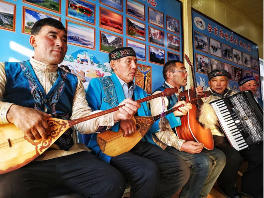 ▲合孜勒哈英村冬不拉彈唱會。圖源:新疆住房和城鄉(xiāng)建設(shè)廳官網(wǎng)