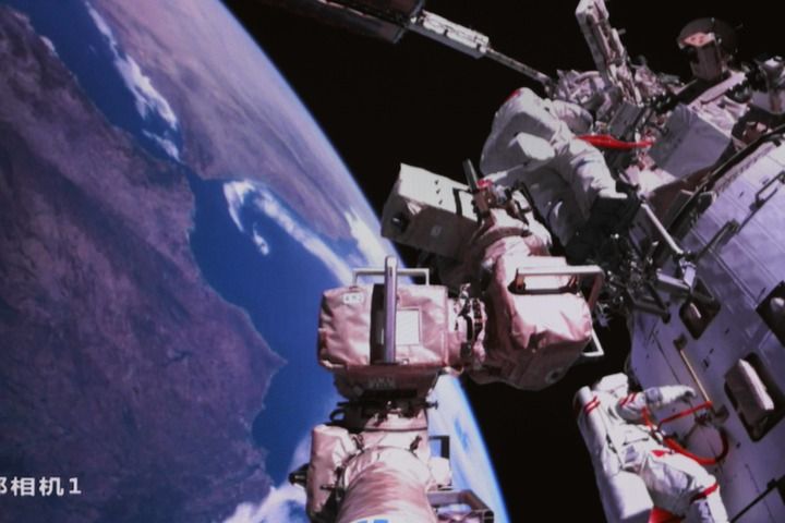 他們二人身著我國新一代“飛天”艙外航天服,上面的航天員簽名見證了中國航天一個又一個紀錄——