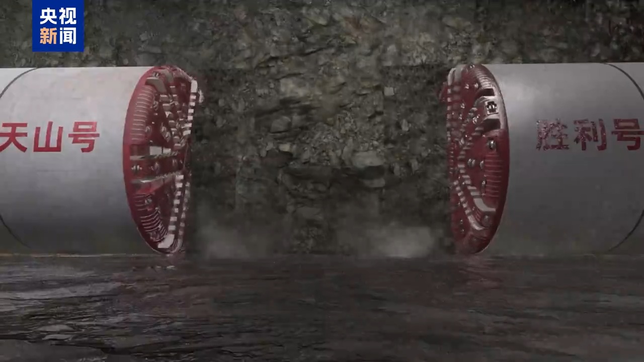 中導(dǎo)洞里,這兩個(gè)分別長(zhǎng)283米、刀盤(pán)直徑接近3層樓房高、重量約2000噸的鋼鐵“巨無(wú)霸”是為中導(dǎo)洞的快速掘進(jìn)專(zhuān)門(mén)“量身定制”的利器。名叫“天山號(hào)”和“勝利號(hào)”的兩臺(tái)硬巖掘進(jìn)機(jī)分別從隧道兩端向中間掘進(jìn)。