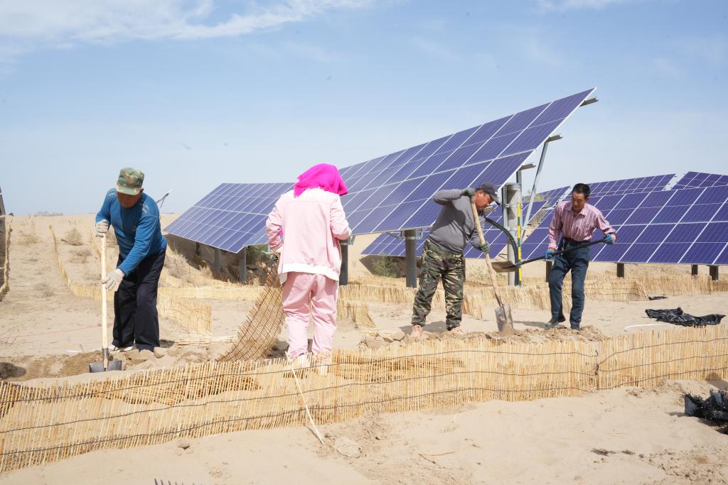 據介紹,該項目預計于6月底具備并網發(fā)電條件,投產運行后年發(fā)電量達3.6億千瓦時,配套治理沙地2.4萬畝。新華林場場長賀鑫說:“在開展‘三北’工程攻堅戰(zhàn)以來,我們采取‘以工代賑’形式,組織周邊村民參與光伏項目建設、林草種植等全流程作業(yè),參與農民的人數超過2000人?!?/p>