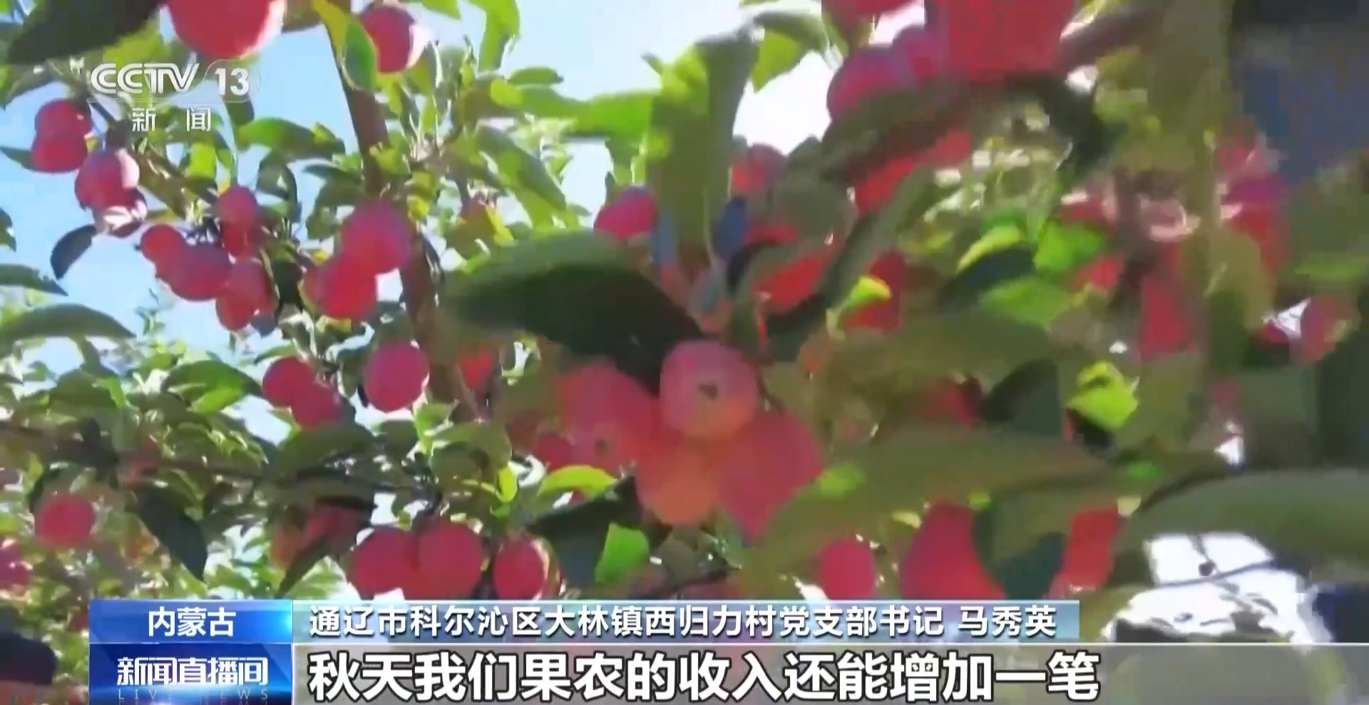 當(dāng)記者來到內(nèi)蒙古通遼市時(shí),看到的是密密麻麻的果樹,這是科爾沁的治沙明星“塞外紅”。依靠“生態(tài)屏障+經(jīng)濟(jì)林”的立體治沙模式,如今,“塞外紅”光賣果,一畝地一年就能有一萬多元的收入。