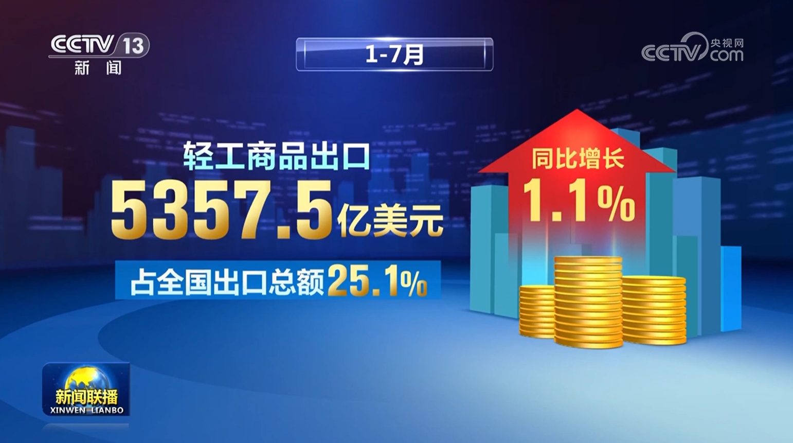 出口方面,繼續(xù)保持韌性。1—7月,輕工商品出口5357.5億美元,占全國出口總額25.1%,同比增長1.1%;21個大類行業(yè)中11個保持增長。