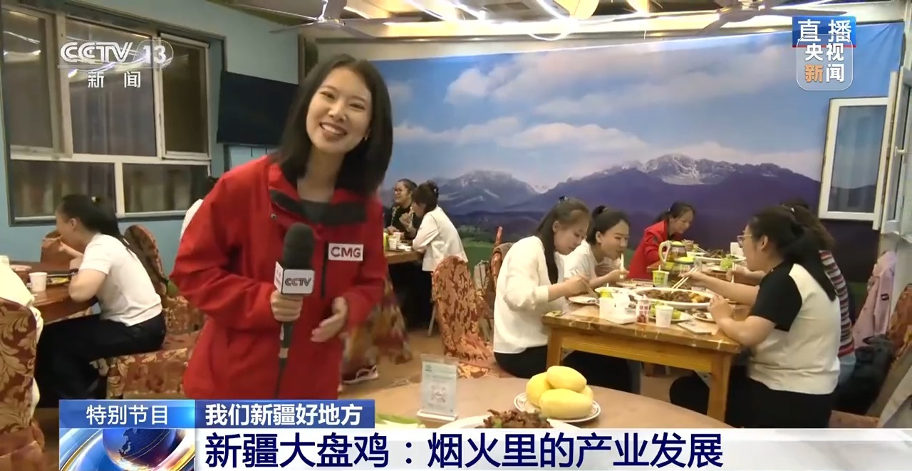 總臺央視記者 張叢婧:在新疆沙灣市的“大盤雞一條街”,這里幾乎家家戶戶都在做大盤雞,此時整條街都彌漫著香味。很多人知道新疆大盤雞,但可能并不知道,它的發(fā)源地就在這里。