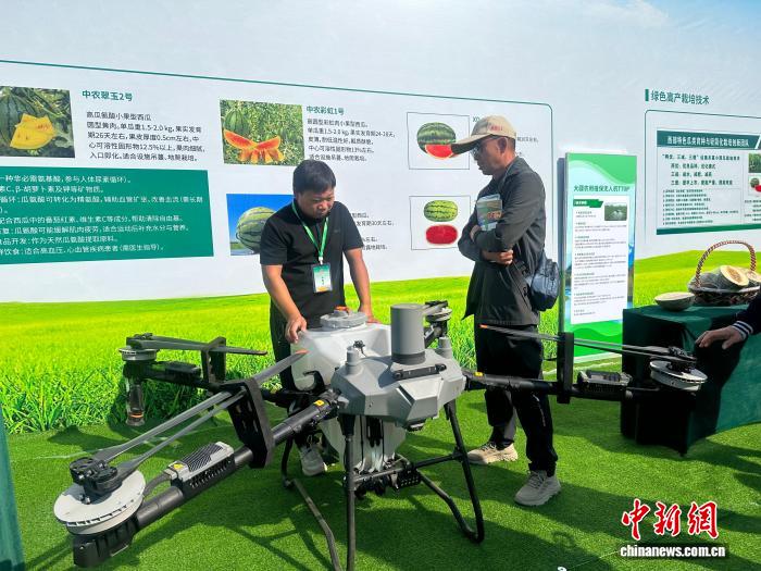 9月23日,新疆慶?!爸袊?guó)農(nóng)民豐收節(jié)”活動(dòng)在昌吉州舉行,圖為現(xiàn)場(chǎng)展出的農(nóng)業(yè)植保無(wú)人機(jī)?!∽蟮さ?攝