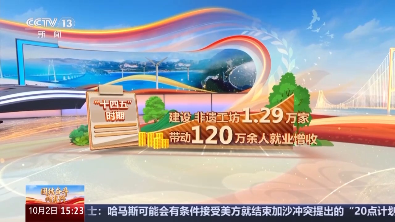 數(shù)據(jù)顯示,各地建設非遺工坊1.29萬家,帶動相關產(chǎn)業(yè)120萬余人就業(yè)增收。通過推動非遺進景區(qū)、街區(qū)、社區(qū),非遺之光正點亮群眾文化生活。