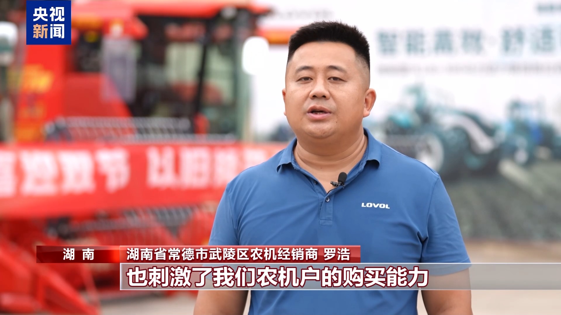 湖南省常德市武陵區(qū)農(nóng)機經(jīng)銷商 羅浩:以舊換新政策有效地促進(jìn)了我們農(nóng)機的流通,也刺激了農(nóng)機戶的購買能力。相比于往年,銷售提升了30%。