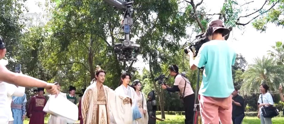 這幾天,位于浙江金華的橫店影視城最高氣溫超過35℃。各大片場里,短劇拍攝更是一片火熱。記者在橫店影視城華夏文化園景區(qū)內(nèi)看見,有兩部短劇正同時(shí)拍攝,劇組各占一塊地方,相隔幾百米左右,燈光、搖臂......各種設(shè)備應(yīng)有盡有,工作人員默契配合,拍攝井然有序。