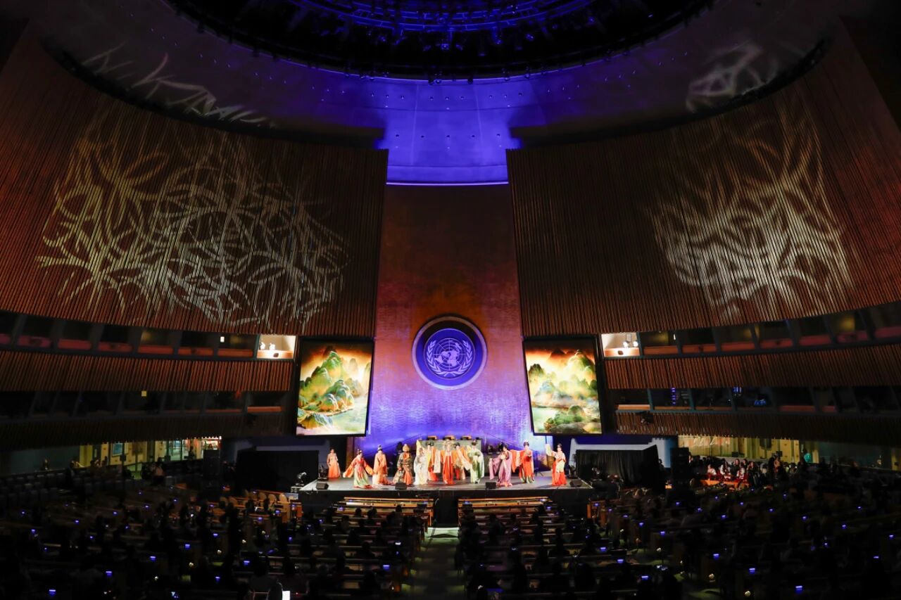 當(dāng)?shù)貢r間2025年6月9日,中國在紐約聯(lián)合國總部舉辦“文明對話國際日”主題活動,包括主題對話會、文明交流互鑒長卷展覽以及“跨越山海的文明對話”文藝演出等活動。 中新社記者 廖攀 攝