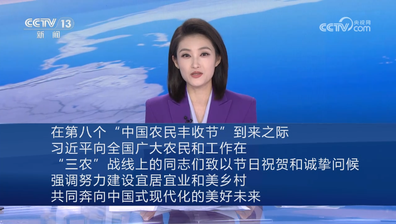 “希望廣大農民群眾充分發(fā)揮主動性創(chuàng)造性,社會各界積極支持參與,努力建設宜居宜業(yè)和美鄉(xiāng)村,共同奔向中國式現(xiàn)代化的美好未來。”在第八個“中國農民豐收節(jié)”到來之際,習近平總書記向全國廣大農民和工作在“三農”戰(zhàn)線上的同志們致以節(jié)日祝賀和誠摯問候。