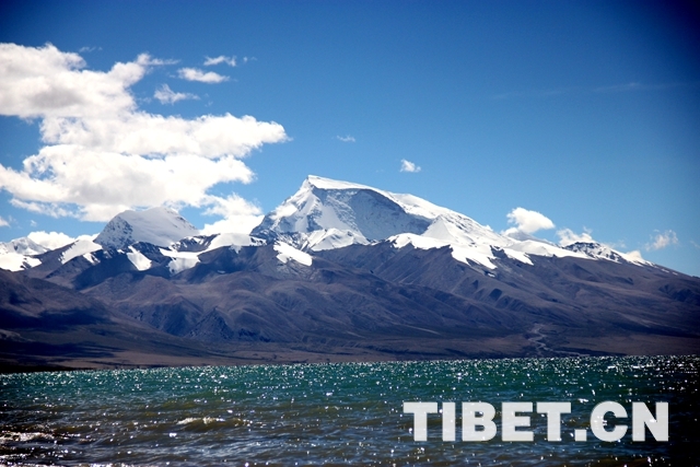 圖為瑪旁雍錯和遠處的岡仁波齊交相輝映