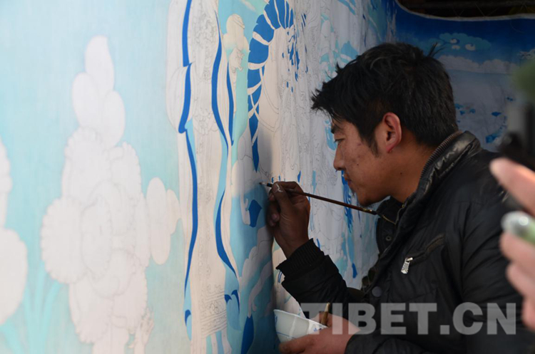 除了現(xiàn)場(chǎng)正在繪畫的3名學(xué)徒外,西熱秋久還有其他14名徒弟,他們大都是村里的建檔立卡戶。自2016年起,經(jīng)駐村工作隊(duì)和村“兩委”研討、建檔立卡戶同意后,最終扶持本村的致富帶頭人西熱秋久成立了唐卡繪制農(nóng)牧民專業(yè)合作社,定為村里的扶貧產(chǎn)業(yè),建檔立卡戶可以來(lái)此學(xué)習(xí),成為學(xué)徒后在這里學(xué)習(xí)唐卡繪制,吃住都在這里并能獲得一定的工資。