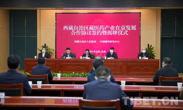 中國西藏網(wǎng)訊 3月23日,西藏自治區(qū)藏醫(yī)藥產(chǎn)業(yè)在京發(fā)展合作協(xié)議簽約暨揭牌儀式在京舉行。西藏自治區(qū)人民政府、中國藏學(xué)研究中心、西藏自治區(qū)衛(wèi)生健康委員會(藏醫(yī)藥產(chǎn)業(yè)推進辦公室)、山南市藏醫(yī)醫(yī)院、西藏甘露藏醫(yī)藥產(chǎn)業(yè)集團有限公司等相關(guān)負責(zé)人參加儀式。中國藏學(xué)研究中心黨組書記陳宗榮,西藏自治區(qū)人民政府副主席羅梅分別致辭,中國藏學(xué)研究中心總干事鄭堆主持。