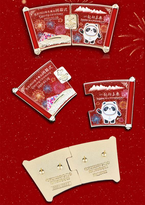 “來日方長” 北京2022年冬奧會閉幕式紀(jì)念徽章一套兩枚,拼合在一起就形成了一個(gè)漂亮的卷軸,寓意雖然北京冬奧會圓滿閉幕,但奧運(yùn)精神薪火相傳,來日方長?;照虏馁|(zhì)為鋅合金,采用釉面彩繪、立體浮雕、立體分層等工藝,每個(gè)產(chǎn)品均雕刻獨(dú)立序列號,高5cm、寬9.3cm、厚3mm,紙盒包裝,限量2022套。