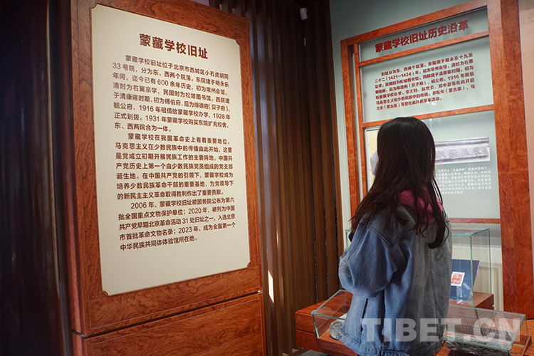 舊址西院,“蒙藏學(xué)校舊址專(zhuān)題展”主要展示舊址歷史沿革和革命活動(dòng),蒙藏學(xué)校學(xué)生參加五四運(yùn)動(dòng);李大釗、鄧中夏、趙世炎等對(duì)蒙藏學(xué)校青年的馬克思主義啟蒙和革命引導(dǎo);烏蘭夫、多松年 等 蒙藏學(xué)校進(jìn)步青年參加校內(nèi)外革命活動(dòng)……突出展現(xiàn)中國(guó)共產(chǎn)黨成立后在這里組織開(kāi)展革命斗爭(zhēng)的歷史?!爸腥A一脈 同心筑夢(mèng)”主題展分為“共同締造新中國(guó)”“團(tuán)結(jié)建設(shè)新社會(huì)”“攜手奮斗繁榮路”“同心奮進(jìn)新時(shí)代”4個(gè)部分。展出照片420多幅,實(shí)物、文獻(xiàn)、檔案280余件,藝術(shù)展 項(xiàng) 18項(xiàng),重點(diǎn)展示新時(shí)代民族工作取得的新的歷史性成就。