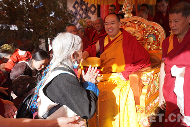 中國西藏網(wǎng)訊 11月13日至14日,全國政協(xié)常委、中國佛教協(xié)會副會長、中國佛協(xié)西藏分會會長班禪額爾德尼?確吉杰布在西藏日喀則市扎什倫布寺多加大院為信教群眾摸頂賜福,這是近年來規(guī)模最大的一次班禪摸頂賜?;顒印D為班禪摸頂賜福 攝影:王淑(中國西藏網(wǎng) 記者/王淑 賈華加)